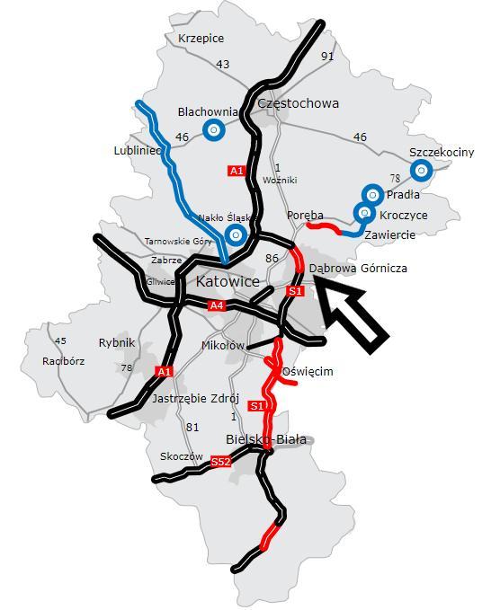 Trwają prace w ramach zadania "Budowa drogi S1 Pyrzowice – Kosztowy, odc. Podwarpie - Dąbrowa Górnicza (przebudowa DK1)". Prace prowadzi firma Budimex na zlecenie Generalnej Dyrekcji Dróg Krajowych i Autostrad.